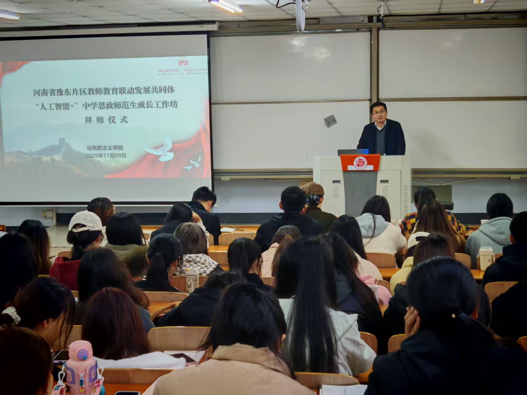 为启动和推进“人工智能+”中学思想政治工作坊各项工作有效开展,bevictor伟德官网于11月9日上午在智圆楼124教室举行中学思想政治工作坊启动仪式及专题培训活动。商丘市基础教育发展中心思政教研员林光辉、张超、商丘市高级中学陈通、商丘市实验中学高秋艳等坊主老师,以及2023级全体坊员参加了此次活动。本次活动由李凌云主持。