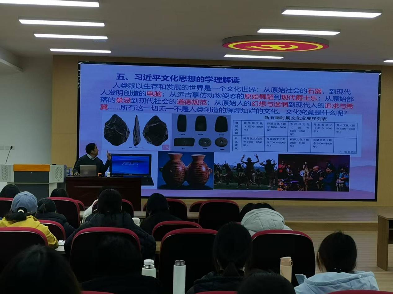 刘振江教授以《全面深刻领会习近平文化思想》为题,从习近平文化思想的创立背景 、习近平文化思想的形成过程 、习近平文化思想的丰富内涵、习近平文化思想的科学体系、习近平文化思想的学理解读五个方面做了一场学术盛宴。报告既有理论的深度与厚度,又有学术视野的广度,老师和同学们聆听后深受启发,深受教育,对深刻领会习近平文化思想大有裨益。